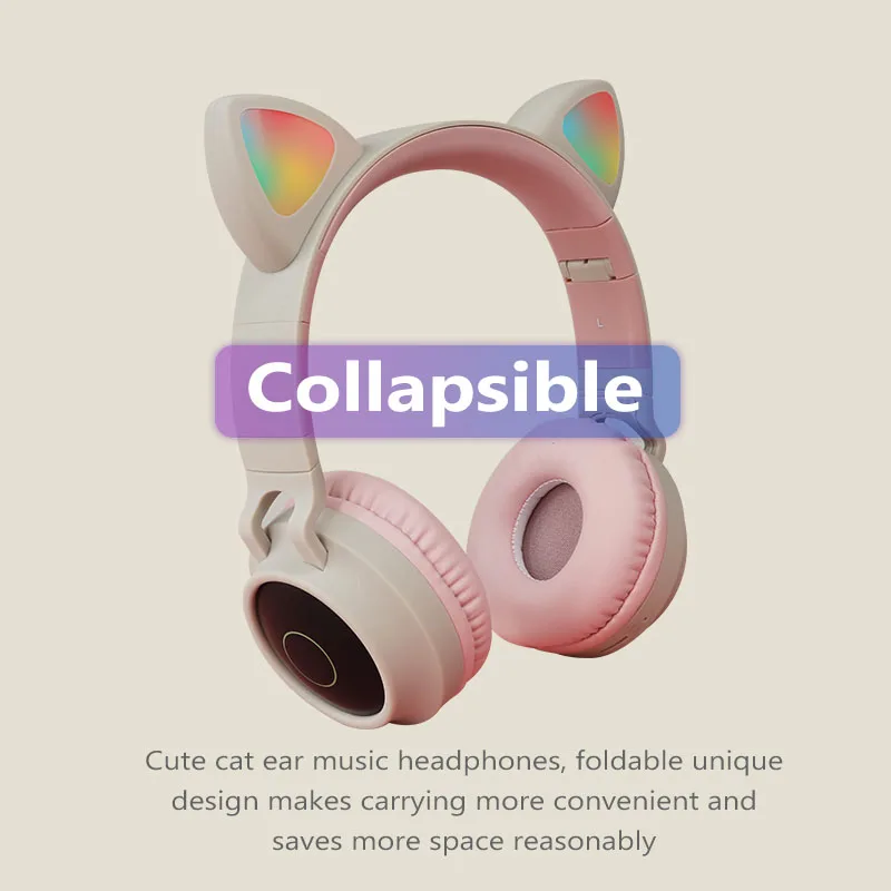 Cute Cat Bluetooth 5.0 Headset Wireless Hifi Music Stereo Bass Headphones LED Light Mobile Phones G